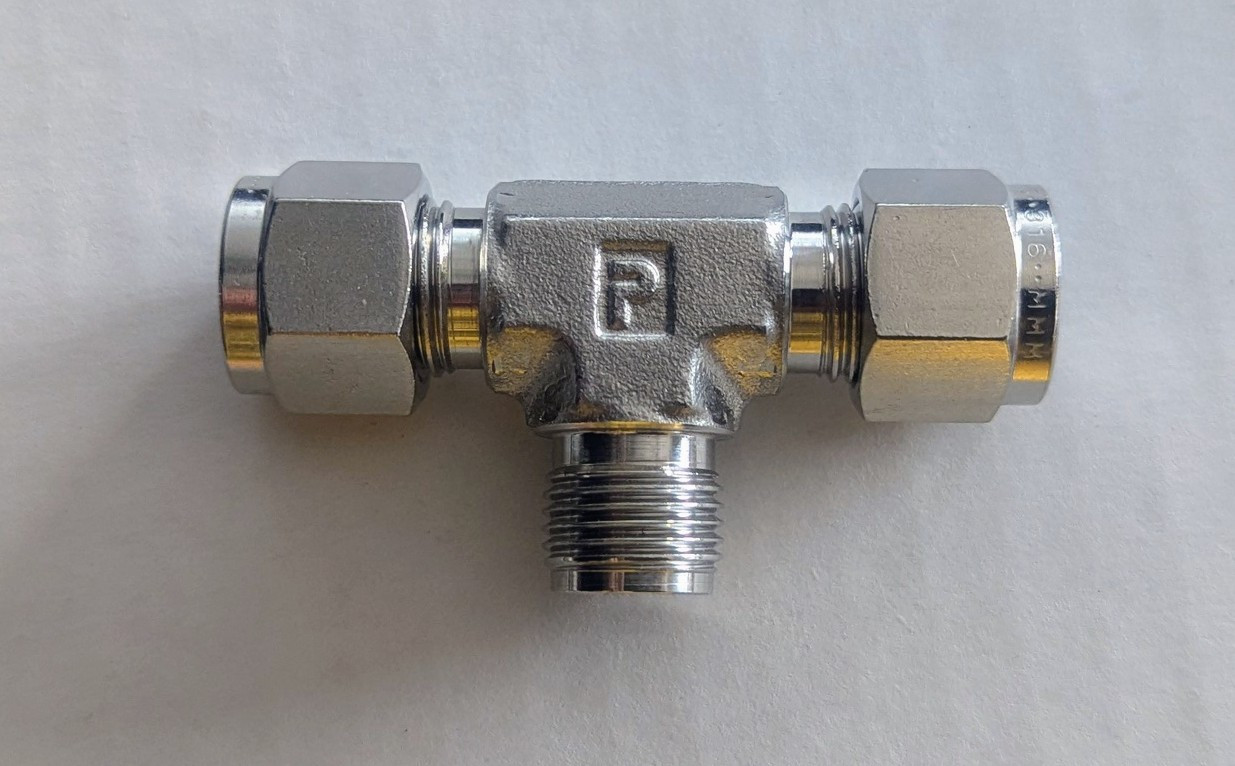CNG or high pressure Parker Stainless Steel 3/8" Tee Model 6ET6-316 less one fitting (sold as pictured)